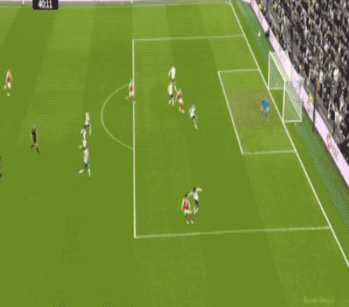 第61分钟,热刺防线一片混乱,萨卡的单刀射门被挡出,皮球来到埃泽的脚下,埃泽梅开二度,两回合对阵热刺打进5球,效率极高。