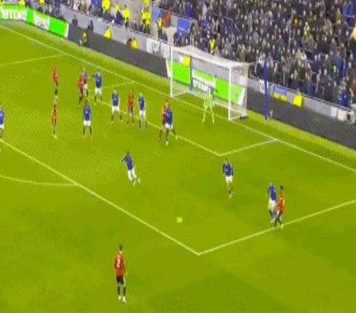随后曼联的进攻一波接一波。达洛特凌空抽射擦柱而出,姆伯莫低射偏出立柱,B费弧顶爆射高出横梁。半场下来,曼联控场优势明显,却始终差一脚终结。埃弗顿则在防守反击中寻找机会,但节奏始终被压制。基恩、布兰斯韦特拼命封堵,皮克福德多次出击稳定后防。