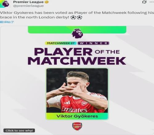 英超官方:哲凯赖什被票选为了英超上周最佳球员,这名前锋在北伦敦德比中完成了梅开二度。
