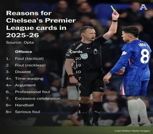 在上轮英超对阵伯恩利的比赛中,切尔西再次有球员吃到红牌,最终蓝军也痛失三分。赛季至今,切尔西已经在英超吃到了62张黄牌和6张红牌,TA则统计了切尔西62张黄牌和6张红牌的吃牌原因。