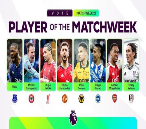 北京时间3月2日,英超官方公布联赛第28轮最佳球员候选名单,这8名球员为贝托、达姆斯高、埃基蒂克、布鲁诺-费尔南德斯、若昂-戈麦斯、迭戈-戈麦斯、加布里埃尔、哈里-威尔逊。