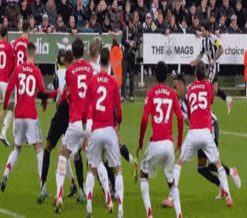 第65分钟,纽卡投诉曼联禁区手球,裁判示意比赛继续。
