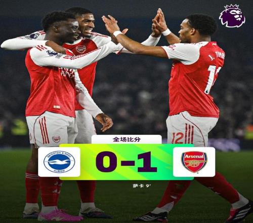 作为英超领头羊,阿森纳凭借萨卡第9分钟的兜射制胜,1-0力挫布莱顿。阿森纳联赛7轮不败,并且豪取3连胜。