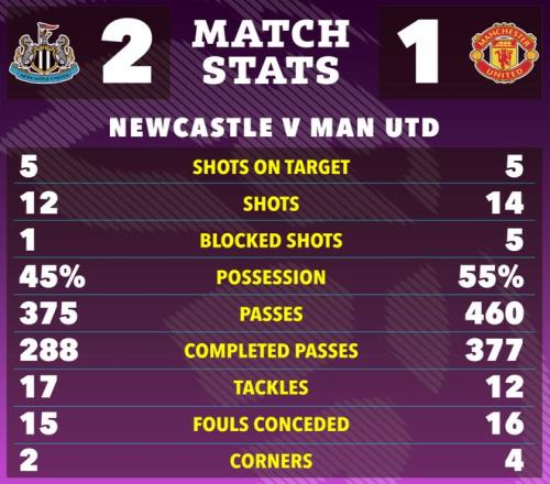 曼联做客圣詹姆斯公园球场挑战纽卡斯尔联,出生于高地的卡里克在此次归乡之旅遭遇执教红魔的首败。曼联超过半场多打一人,却被詹姆斯·戈登点球率先破门,卡塞米罗虽然扳平,然而比赛最后时刻「喜鹊」的威尔·奥苏拉世界波绝杀,红魔1-2败走麦城。