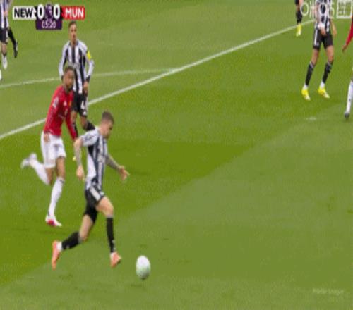 比赛甫一开球,曼联就遭遇惊魂时刻。基朗·特里皮尔右路传中,皮球高高越过塞纳·拉门斯,击中了门框。随后,纽卡斯尔制造了更多的威胁,幸好前红魔边锋安东尼·埃兰加等「喜鹊」攻击手射门缺乏准头,没有再威胁到拉门斯。
