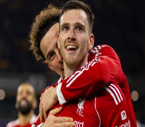 下半场风云突变。第51分钟,利物浦进球了。罗伯逊在禁区外起脚远射,皮球直接钻入球门右侧。这脚世界波角度刁钻,门将把身体拉到极限都没能碰到皮球。只过了2分钟,利物浦就再次进球!罗伯逊在左侧送出横传球,萨拉赫包抄射门,球进了!33岁的萨拉赫连场进球。