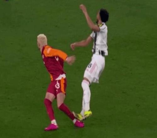 以尤文图斯球员劳埃德-凯利在附加赛对阵加拉塔萨雷时的下场为例。他的犯规最初被出示第二张黄牌,后来升级为直接红牌,因为这名后卫的脚底(似乎是意外地)落在了巴里什-耶尔马兹的小腿后部,这意味着他将因直接红牌被禁赛两场。欧足联称这是“明显不公平的接触……明显危及对手安全”。