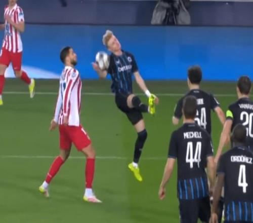 欧冠附加赛轮次的证据确实表明了这一点。例如,在布鲁日对阵马德里竞技的比赛中,当球击中布鲁日的若阿金-塞时,尽管这名后卫背对来球,但在VAR回看后,还是判罚了点球。欧足联称若阿金-塞的右臂处于“不自然位置且远离身体”。