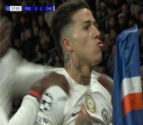 在打入这粒进球后,恩佐在角旗边手指球衣上的世俱杯金标进行庆祝,而切尔西正是通过战胜巴黎获得了改制后首届世俱杯的冠军。