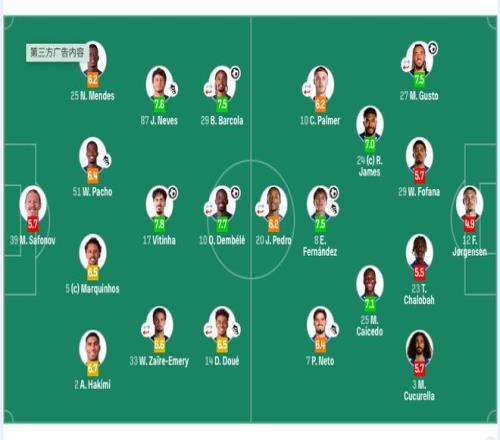 第39分钟,詹姆斯下底传中,帕尔默的射门被挡出,巴黎立即发动快速反击,登贝莱一个人戏耍切尔西防线,没有选择传给阿什拉夫,而是自己将球打进。