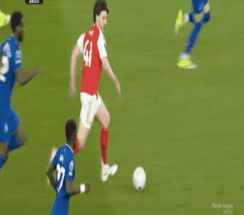 5分钟后,赖斯插上和萨卡打出配合后突入禁区,加纳做出关键铲球,将球拦下。