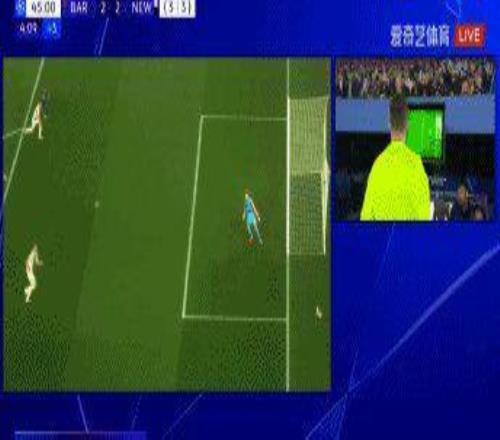 45+7’亚马尔直塞,费尔明横传门前,特里皮尔拉倒包抄的拉菲尼亚,裁判起初未作表示,VAR介入后改判点球+黄牌,亚马尔操刀劲射,拉姆斯代尔触到皮球仍未能阻止皮球入网,巴萨3比2。
