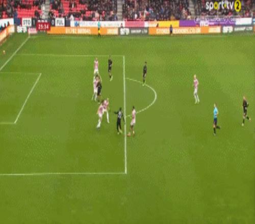第55分钟,凯文利用个人能力得分,富勒姆1-1斯托克城
