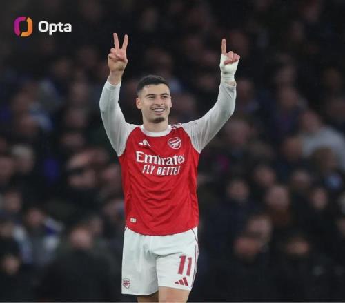 Opta统计,马丁内利本场破门后成为了94-95赛季的赖特之后,首位单赛季在国内杯赛以及欧战比赛中进球10+的枪手。