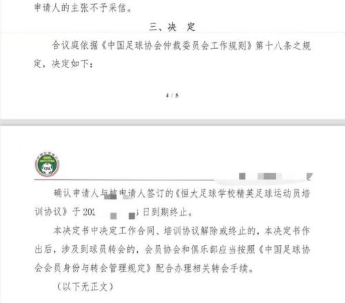 最近有关已经年满18周岁的前恒大足校球员杨黔东,通过中国足协纠纷解决委员会提交纠纷解决申请书,要求裁决为自...