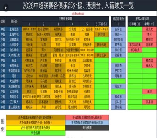 根据德国转会市场中国区管理员朱艺的统计,2026赛季中超联赛冬歇期,16支球队引进45名新外援,8支球队的外援更换人数达到3个及以上。山东泰山四名外援留队,瓦科、克雷桑、泽卡和马德鲁加继续代表泰山队出战新赛季,外援中卫阿尔瓦罗取代洛佩斯,泰山队新赛季五外援阵容确定。
