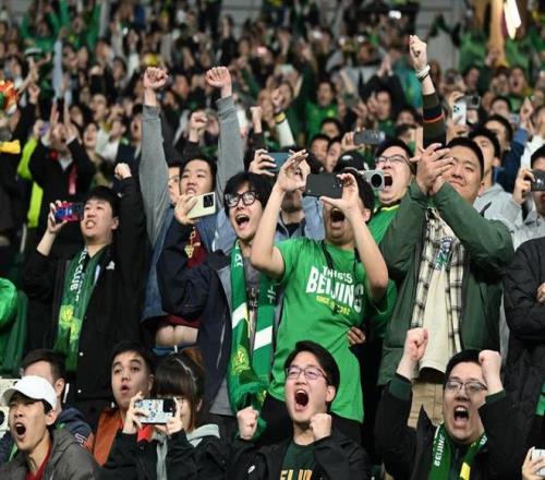2024年4月5日,北京国安队球迷庆祝球队进球。 当日,在2024赛季中国足球协会超级联赛第四轮比赛中,北京国安队主场2比2战平上海海港队。 新华社记者 赵子硕 摄