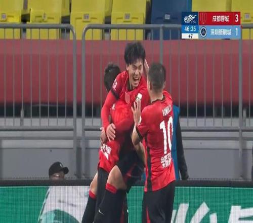 下半场回来,人数占优的成都蓉城,依旧围着对手的禁区猛攻,韦林顿的空门直接击中横梁弹出。第63分钟,深圳新鹏城中场丢球,对手迅速发动反击,韦林顿席尔瓦策动后,随即快速插入禁区,头球破门,4:1!成都蓉城进一步扩大比分。