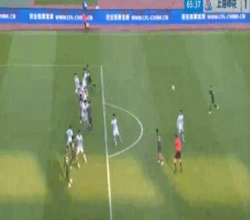 凭借特谢拉的进球,上海申花取得领先。第66分钟,米特里策开出任意球,瓜里拉帕头球冲顶被后卫阻挡,刘浩帆回做,王钰栋推射破门。打入赛季首球之后,王钰栋滑跪庆祝。