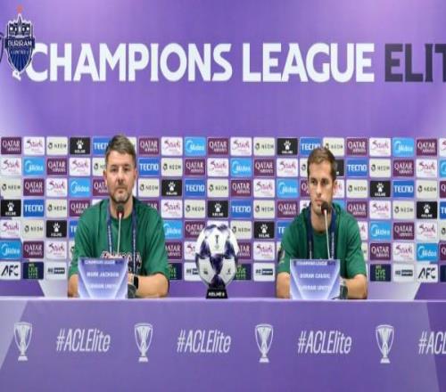 北京时间2月16日,在亚冠精英联赛阶段收官战,武里南联主场对阵上海申花的赛前,武里南联主帅马克-杰克逊和队员乔希奇出席了新闻发布会。